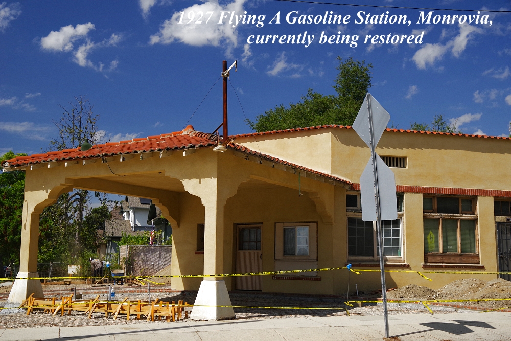 |  Restoration is underway on the 1927 Flying A station in Monrovia |