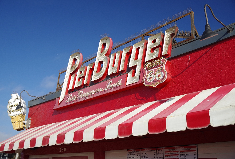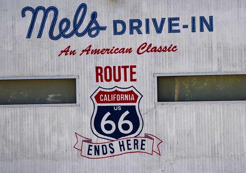 |  Historically, Route 66 ended here, by Mel's Drive-In...in 2009, an "unofficial end" was extended to the Santa Monica Pier, in order to advertise that the Mother Road ended at the Pacific Ocean! |