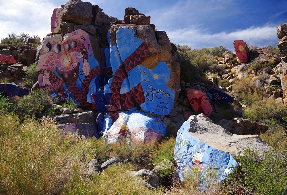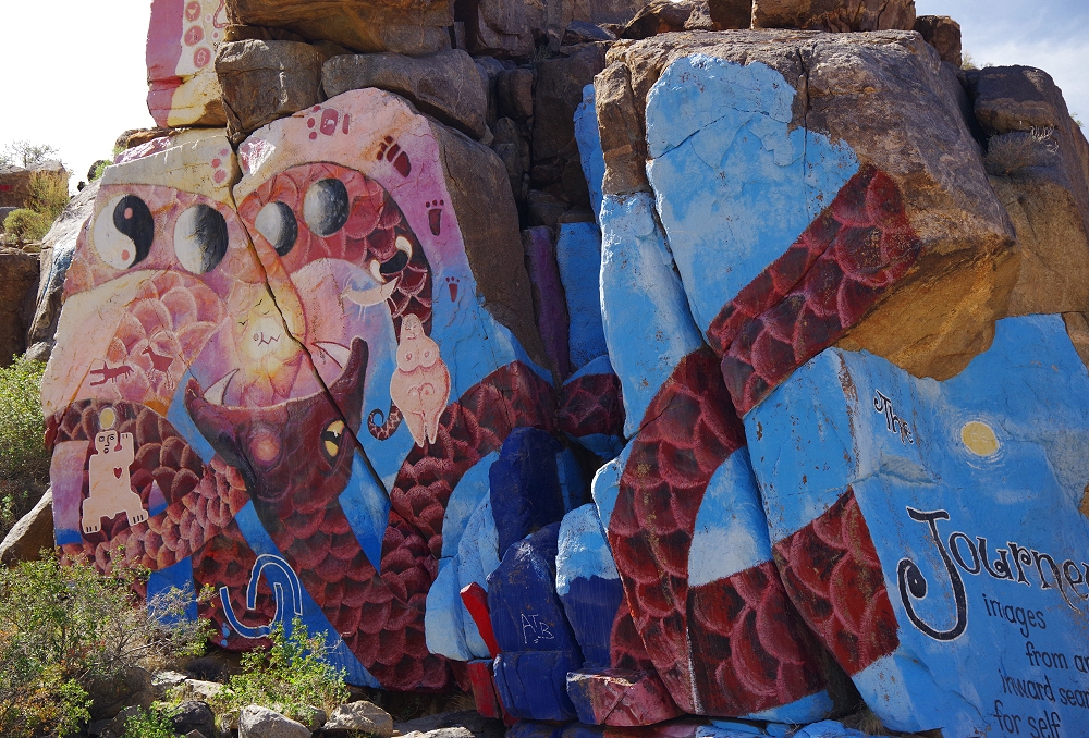 |  The road is a bit rough on the way to the dead end at the murals - about 1.5 miles east of town, so beware! |
